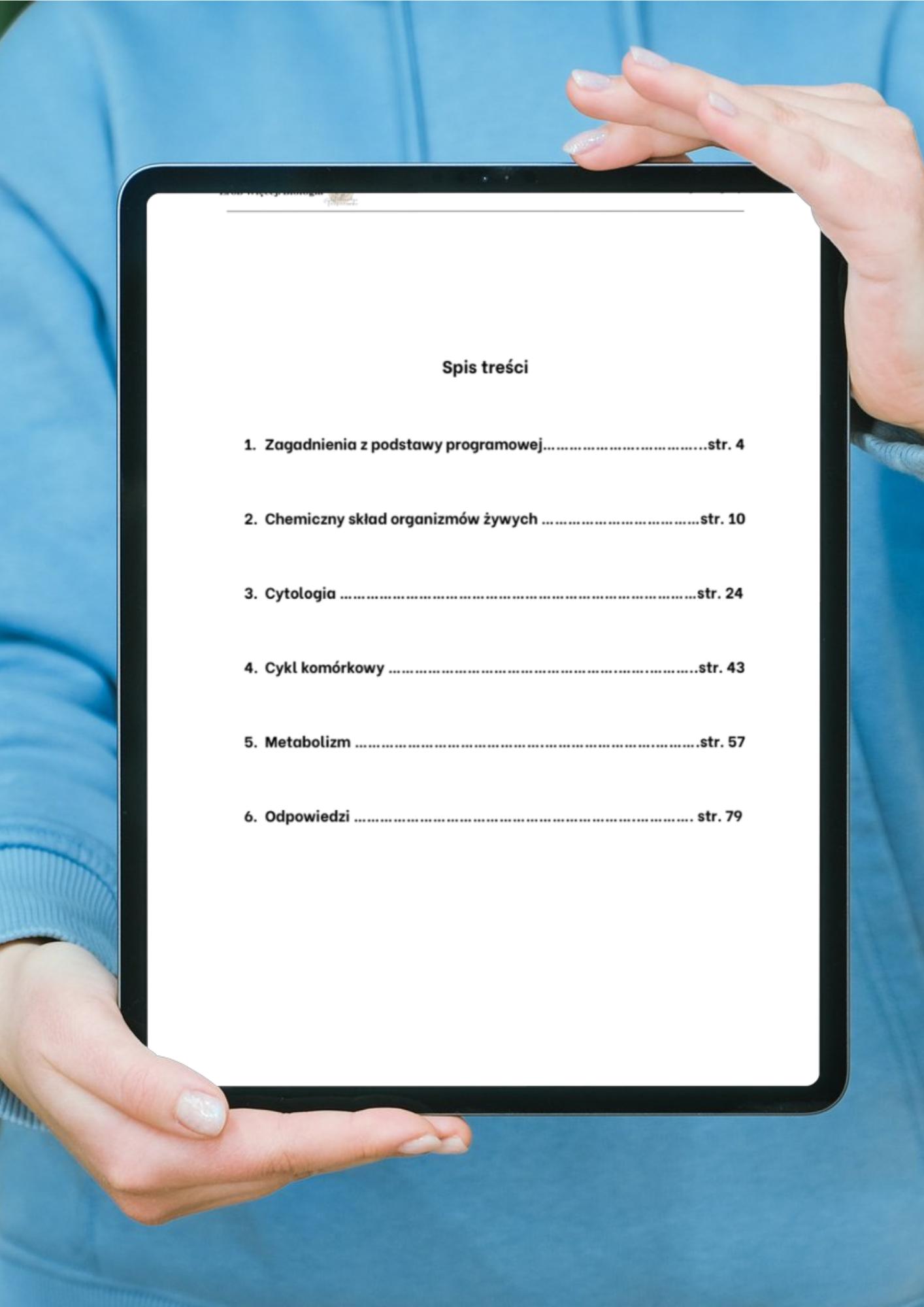 W zbiorze dla kasy I znajdziesz zadania z działów: chemiczny skład organizmów, budowa komórki i cykl komórkowy oraz metabolizm.