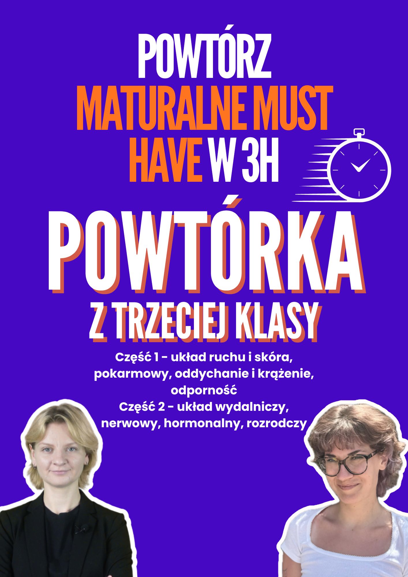 Powtórkę prowadzi Kaja Królikowska, którą niektórzy z Was zdążyli już poznać jako moją asystentkę, ja natomiast zadbałam o to, żebyście dostali super materiały i świeżutką porcję moich zadań autorskich. Kaja jest doświadczoną w nauczaniu studentką 5. roku biologii na Uniwersytecie Jagiellońskim, uczniowie chwalą sobie jej pozytywną energię, miłą atmosferę na zajęciach i umiejętność jasnego tłumaczenia trudnych zagadnień